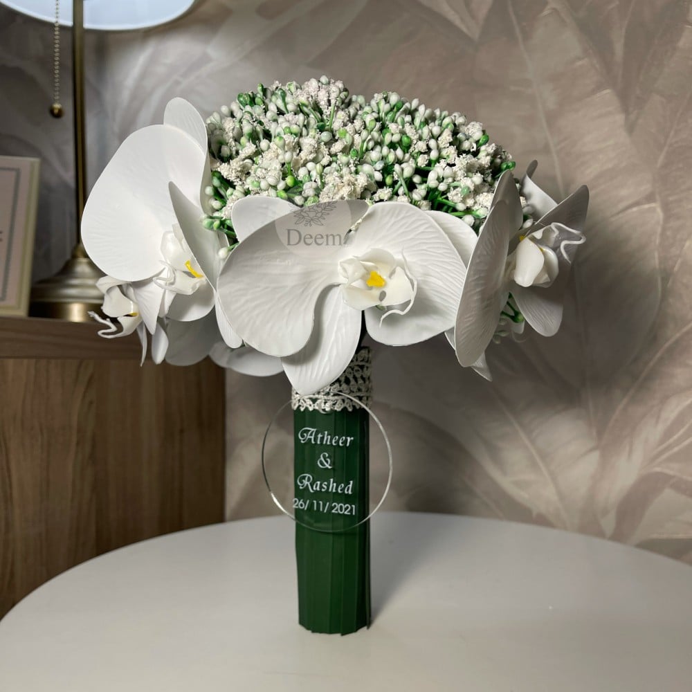 مسكة من ورد الجبسوفيليا محوف بالأوركيد.