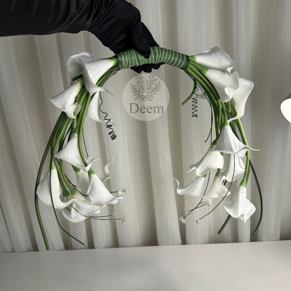 مسكة من الكالا الأنيق الابيض ذو الملمس الطبيعي على شكل قوس .